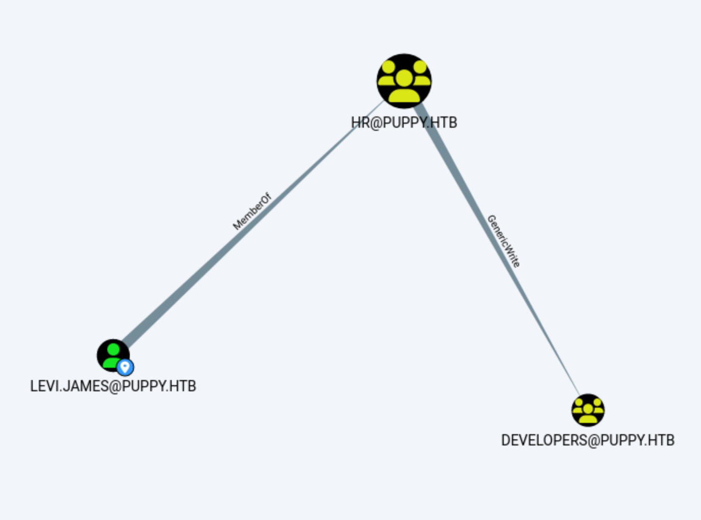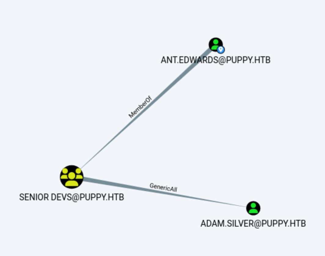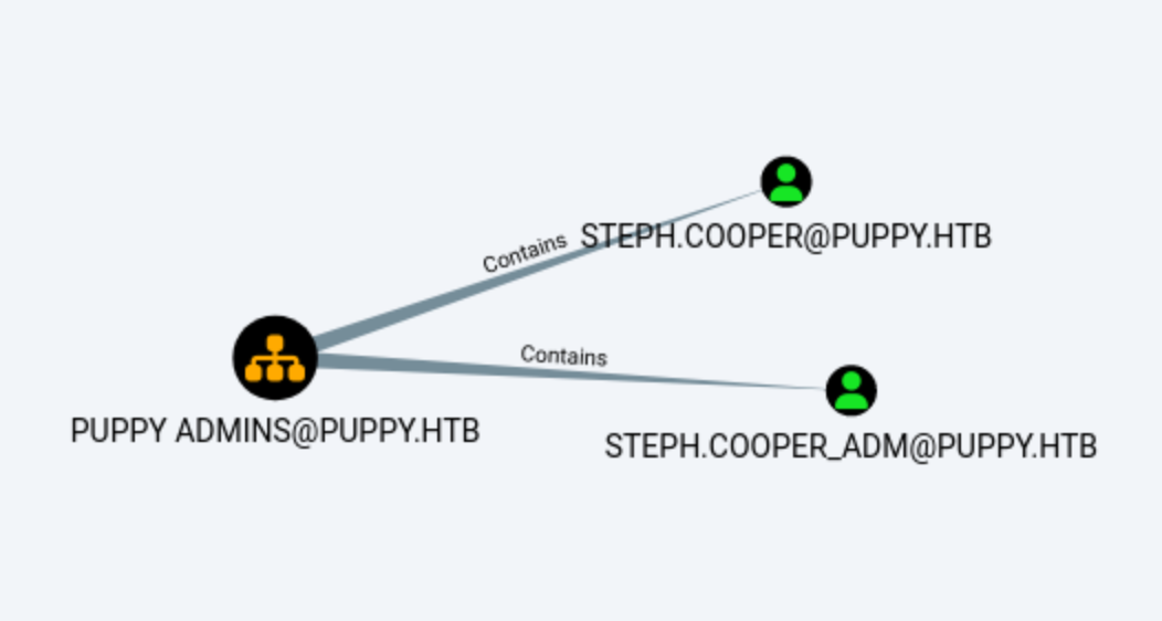 steph.cooper doesn’t have any special permissions, but we know from earlier enumeration that there is an administrator in the domain with a similar name. steph.cooper likely created a separate account for administrative tasks and placed both his accounts under the same OU (Puppy Admins) for easier management. This OU also didn’t have special group policies applied to it, so we’ll have another way to exploit.