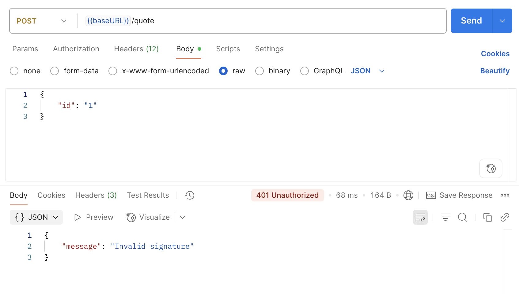 During the live demo, I made a little mistake that resulted in the API rejecting my requests despite having the right signature. This was due to how I was verifying the request body after the signatures matched.